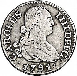 -Anverso: Busto con manto mirando a la derecha, "CAROLUS·IIII·DEI·G·", (fecha) a continuación, entre los puntos.